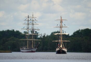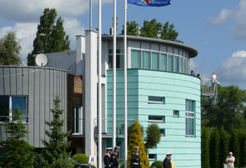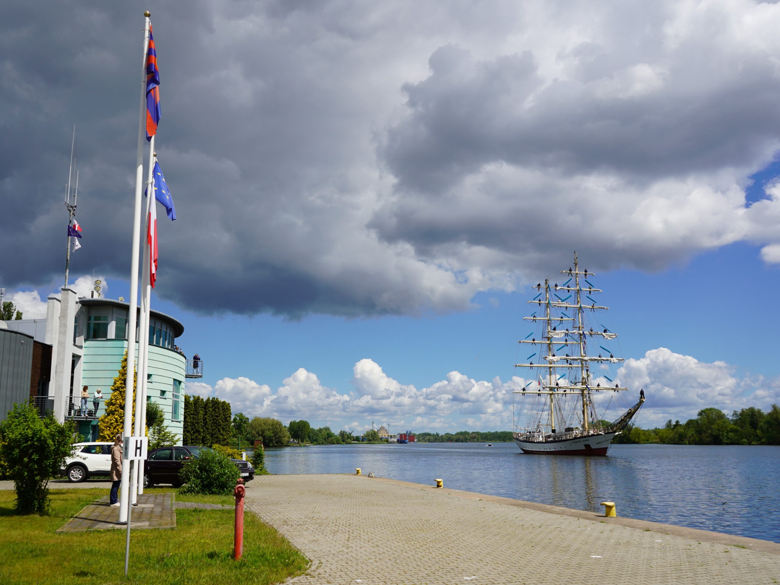 Stettin, einer der wenigen europäischen Häfen, empfängt seine ankommenden Gäste mit einem feierlichen Flaggengruß.